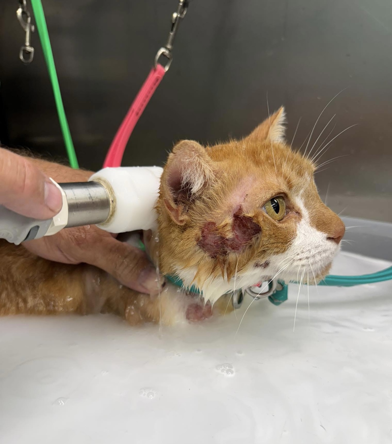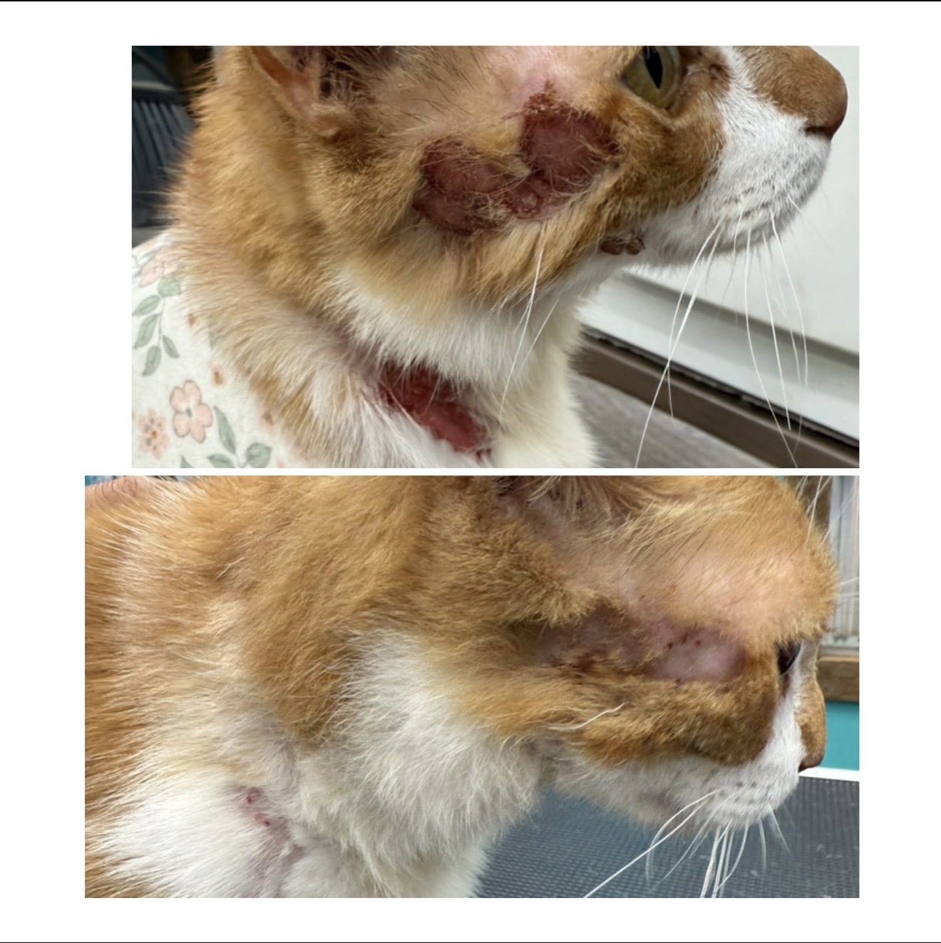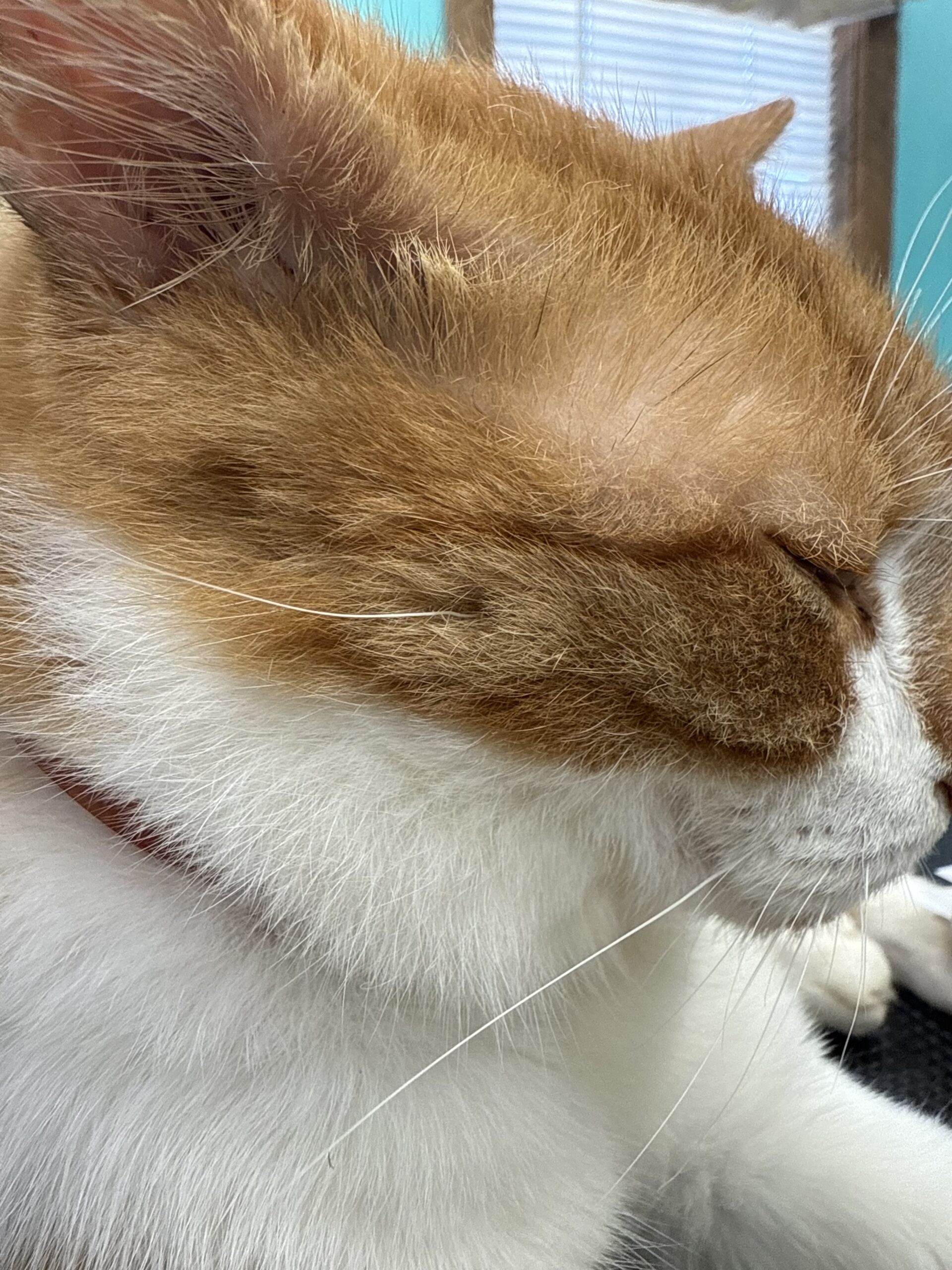 Mr. Jingles has been suffering from a bacterial infection since June. He was given a few rounds of steroids that did not help. Bloodwork unfortunately revealed feline leukaemia, a virus that weakens the immune system.