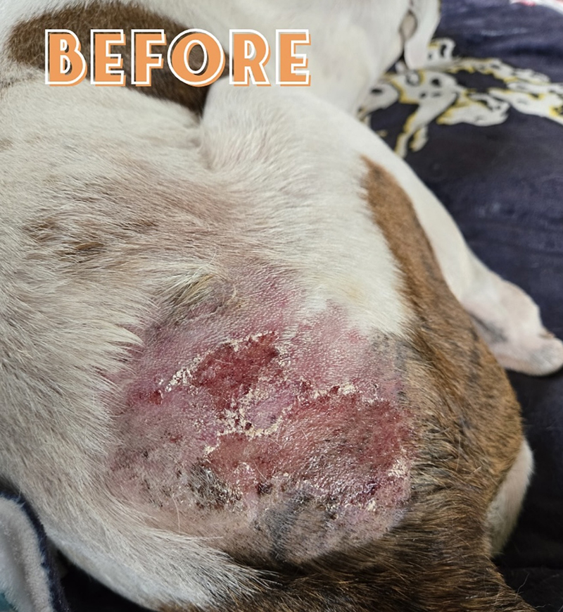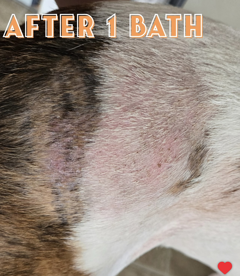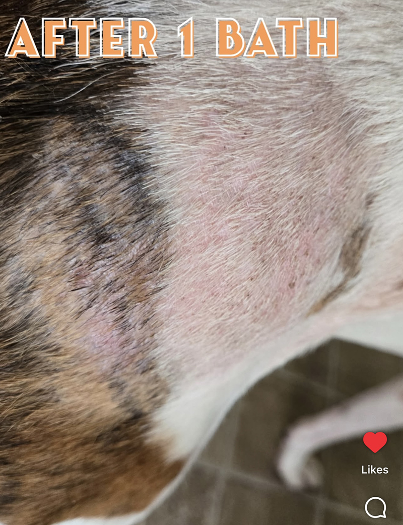 Her mom knew to get her in the microbubbles and start cleaning out all of those allergens. After just one Thera-Clean bath, Roxy’s skin improvement was undeniable. A week later she went to give her another one but she was healed already. Mom also says that, “she’s pretty much stopped itching from the allergies too”.