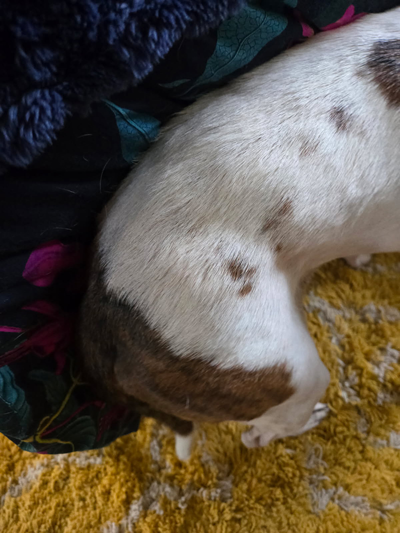 Roxy has always had bad seasonal allergies. Due to constant licking, itching and chewing she gave herself a really bad hotspot.